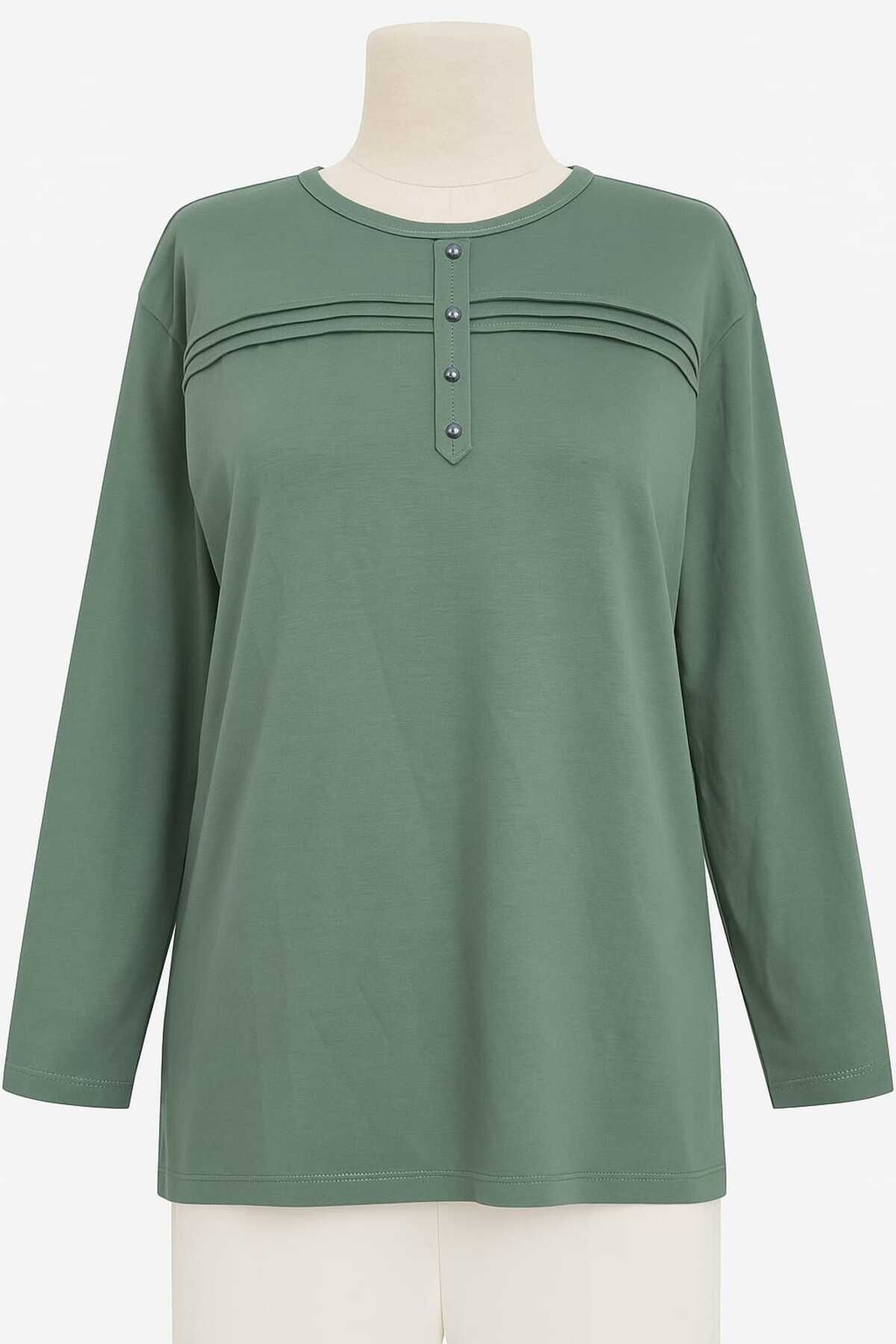 Kadın Likralı Büyük Beden Yeşil Anne Penye Bluz Yeni Sezon Çizgili Şeritli Çağla Yeşili - L