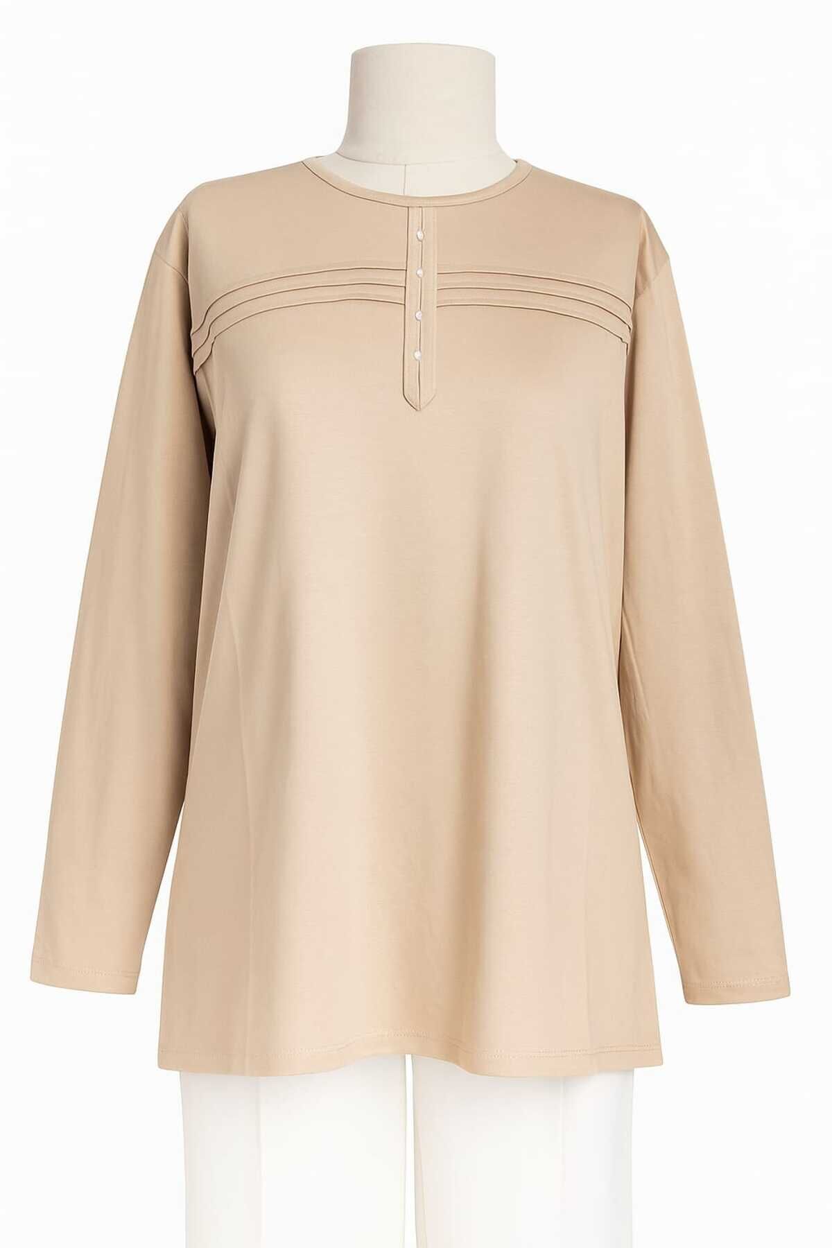 - Rahat kesimi ile günlük kullanım için ideal olan bu lacivert anne penye bluz, şıklığı konforla buluşturuyor.; - Regular kalıp sayesinde her vücut tipine uyum sağlayarak rahat bir oturuş sunar.; - 30 derecede yıkama imkanı ile kolay bakım avantajı sağlar; böylece zamandan tasarruf edilirken cildinize zarar gelmez.; - Orta kalınlıkta kumaşı mevsim geçişlerinde ideal sıcaklıkta tutar ve mevsim normallerine uyum sağlar.; - İç göstermeyen yapısıyla rahatlıkla tercih edilebilir; günlük aktivitelerinizde kendinizi güvende hissedersiniz.; - Kemersiz tasarımı sayesinde pratik kullanım sunarken, şerit detaylarıyla modern bir görünüm kazandırır.; - Organik materyaliyle sürdürülebilir moda anlayışına katkıda bulunurken aynı zamanda cildinizle dosttur.; - Uzun kollu yapısı ile mevsim koşullarına uygun koruma sağlar; serin havalarda bile sıcak tutar.; - Basic silueti sayesinde farklı aksesuarlarla kolayca kombinlenebilir; gardrobunuzdaki çok yönlü parçalar arasına girer.; - Bisiklet yaka detayı ile sade ama şık bir görünüm sunarken likralı dokusu esnekliği arttırarak gün boyu rahat hareket etmenizi sağlar.; - Kapamasız tasarımıyla basit kullanım imkanı tanırken, süprem dokuma tipi dayanıklılığı arttırır.; - Cepsiz yapısıyla minimalist tarzınıza uyum sağlarken şerit detaylarıyla dikkat çekici bir stil oluşturur.; - Tesettür giyim koleksiyonuna ait bu bluz, tesettürlü kadınların da tercihi olacak şekilde tasarlanmıştır.; - Süprem dokuma tipinin sunduğu yumuşaklıkla teninizde nazikçe hissedilirken likra materyali esnekliği arttırarak gün boyu konforlu bir deneyim yaşatır.; - Tüm sezonlarda rahatlıkla tercih edebileceğiniz bu lacivert anne penye bluzu, gardrobunuza renk katmak için idealdir.; - Astarsız oluşuyla hafiflik kazandırırken kapamasız yapısıyla pratik kullanım sunar; böylece her anınıza eşlik eder.; - Kapsız tasarımı sayesinde rahatlıkla giyilip çıkartılabilir; zamandan tasarruf etmenizi sağlar.; - Düz deseniyle sadelikten yana olanların beğenisini kazanırken şerit detaylarıyla modern çizgilere sahip olmanızı sağlar.; - Tesettür giyim koleksiyonuna ait olmasıyla hem şıklığı hem de tesettür prensiplerine uygunluğu ön plana çıkartır.; - Likralı materyali esneklik kazandırarak vücut hatlarınıza mükemmel uyum sağlar; hareket özgürlüğünüzü kısıtlamaz.; - Gündüzden geceye her ortama uyum sağlayan bu lacivert anne penye bluz, her anınıza eşlik ederken stil sahibi görünmenizi sağlar.; - XL bedeniyle geniş beden skalasına hitap ederek herkes için erişilebilirlik sunar; geniş beden seçenekleri sayesinde rahatlıkla tercih edebilirsiniz.; - Astarsız oluşuyla minimalist yaklaşımı benimseyenlerin beğenisini kazanırken şerit detaylarıyla göz alıcı bir dokunuş ekler.; - Kapamasız yapısıyla pratik kullanım imkanı tanırken süprem dokuma tipinin sunduğu yumuşaklıkla teninizde nazikçe hissedilir; likra materyali esnekliği arttırarak gün boyu konforlu bir deneyim yaşatır.- Orta yaş ve üzeri kadınlar için ideal, likralı kumaş yapısıyla rahatlık ve esneklik sunar.; - Dört mevsim boyunca kullanıma uygun, krem rengi ve çizgili şerit detaylarıyla şık bir görünüm sağlar.; - Regular kalıp ile vücut hatlarını saran ancak sıkmayan bir yapıya sahiptir.; - Dokuma kumaş tipi sayesinde dayanıklılık ve konforu bir arada sunar.; - Kapamasız tasarımı ile kolay giyilip çıkarılabilir; pratik kullanım imkanı tanır.; - Tesettür giyim koleksiyonuna özel olarak tasarlanmıştır; modern ve zarif bir stil sunar.; - Uzun kollu yapısıyla mevsim geçişlerinde ideal koruma sağlar.; - Süprem dokuma tipi, ürünün formunu korumasına yardımcı olurken aynı zamanda yumuşak dokunuşuyla teninize nazikçe temas eder.; - Organik materyal bileşeni ile sürdürülebilir moda anlayışına katkıda bulunur.; - Cool & Comfort persona'sını yansıtan bu bluz, günlük kullanım için idealdir; hem gündüz hem gece kombinlerinizde rahatlıkla tercih edebilirsiniz.; - Bisiklet yaka tipiyle modern ve zamansız bir siluet oluşturur.; - Çizgili deseniyle klasik