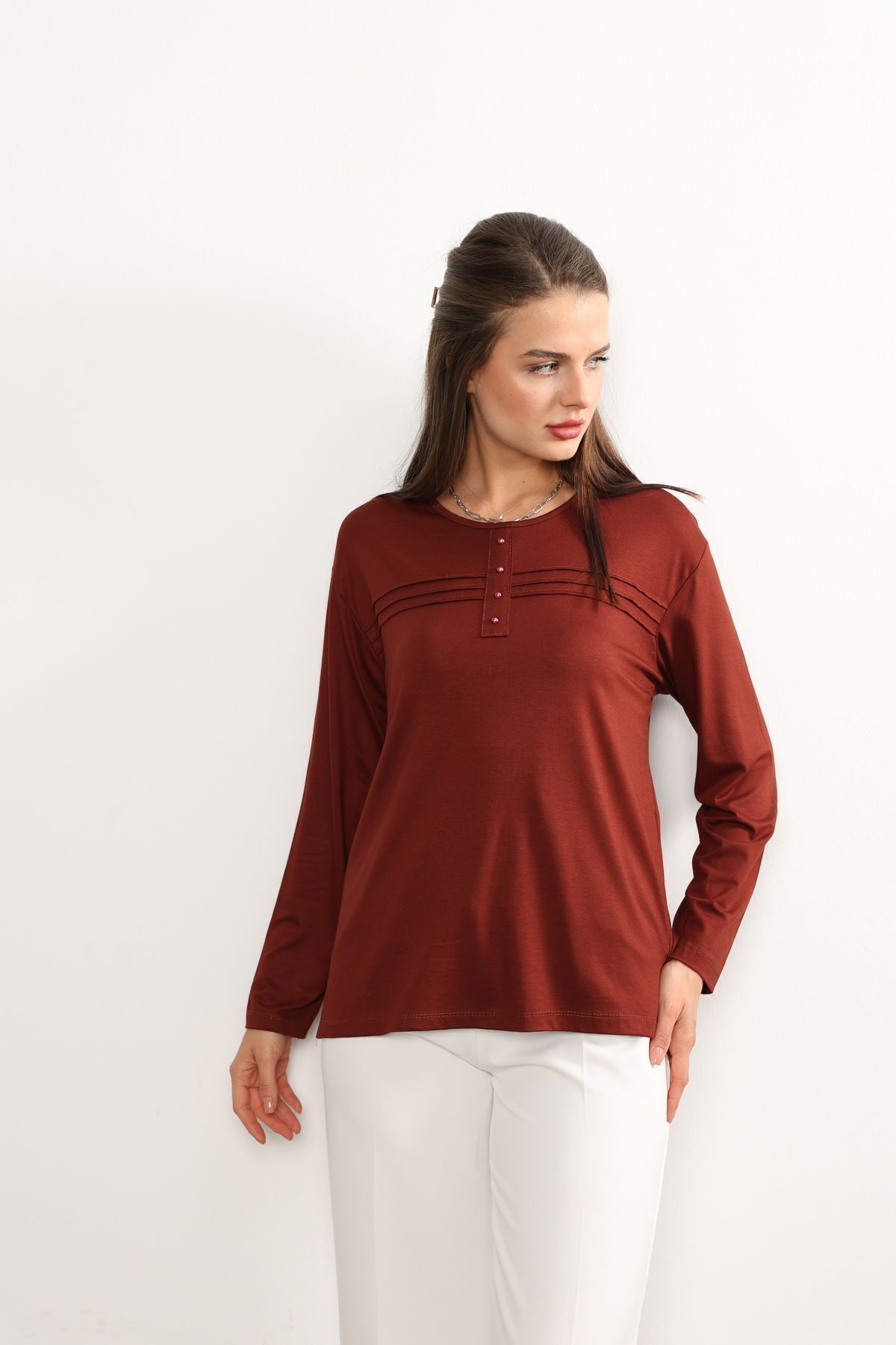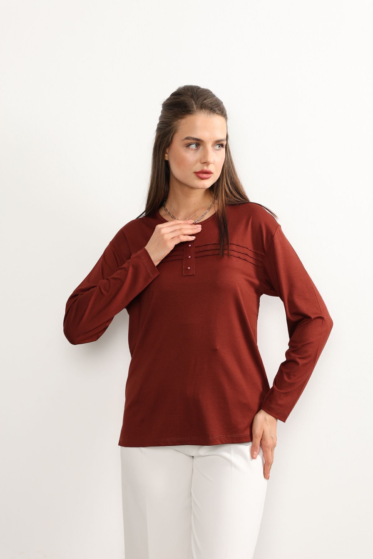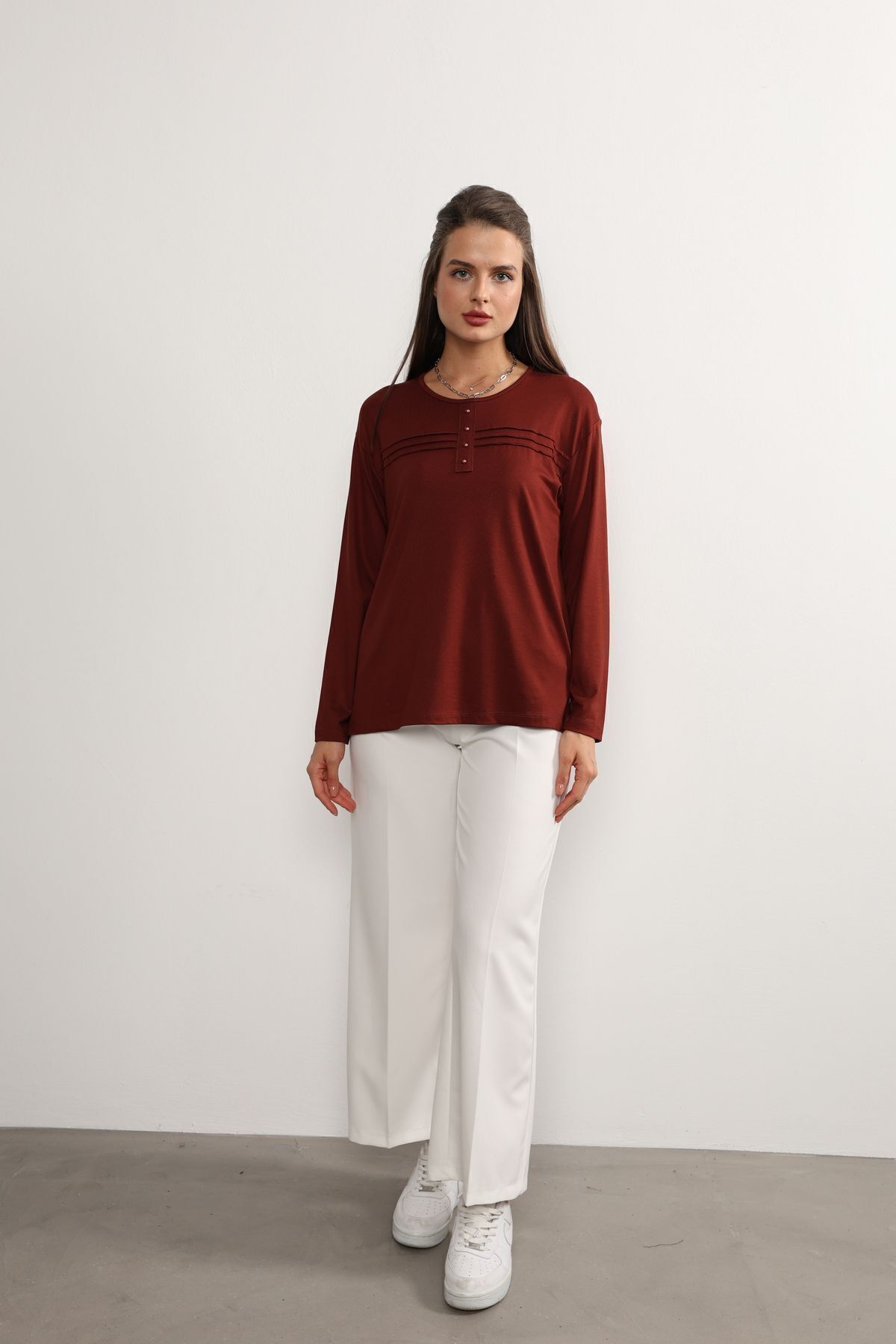 - Rahat kesimi ile günlük kullanım için ideal olan bu lacivert anne penye bluz, şıklığı konforla buluşturuyor.; - Regular kalıp sayesinde her vücut tipine uyum sağlayarak rahat bir oturuş sunar.; - 30 derecede yıkama imkanı ile kolay bakım avantajı sağlar; böylece zamandan tasarruf edilirken cildinize zarar gelmez.; - Orta kalınlıkta kumaşı mevsim geçişlerinde ideal sıcaklıkta tutar ve mevsim normallerine uyum sağlar.; - İç göstermeyen yapısıyla rahatlıkla tercih edilebilir; günlük aktivitelerinizde kendinizi güvende hissedersiniz.; - Kemersiz tasarımı sayesinde pratik kullanım sunarken, şerit detaylarıyla modern bir görünüm kazandırır.; - Organik materyaliyle sürdürülebilir moda anlayışına katkıda bulunurken aynı zamanda cildinizle dosttur.; - Uzun kollu yapısı ile mevsim koşullarına uygun koruma sağlar; serin havalarda bile sıcak tutar.; - Basic silueti sayesinde farklı aksesuarlarla kolayca kombinlenebilir; gardrobunuzdaki çok yönlü parçalar arasına girer.; - Bisiklet yaka detayı ile sade ama şık bir görünüm sunarken likralı dokusu esnekliği arttırarak gün boyu rahat hareket etmenizi sağlar.; - Kapamasız tasarımıyla basit kullanım imkanı tanırken, süprem dokuma tipi dayanıklılığı arttırır.; - Cepsiz yapısıyla minimalist tarzınıza uyum sağlarken şerit detaylarıyla dikkat çekici bir stil oluşturur.; - Tesettür giyim koleksiyonuna ait bu bluz, tesettürlü kadınların da tercihi olacak şekilde tasarlanmıştır.; - Süprem dokuma tipinin sunduğu yumuşaklıkla teninizde nazikçe hissedilirken likra materyali esnekliği arttırarak gün boyu konforlu bir deneyim yaşatır.; - Tüm sezonlarda rahatlıkla tercih edebileceğiniz bu lacivert anne penye bluzu, gardrobunuza renk katmak için idealdir.; - Astarsız oluşuyla hafiflik kazandırırken kapamasız yapısıyla pratik kullanım sunar; böylece her anınıza eşlik eder.; - Kapsız tasarımı sayesinde rahatlıkla giyilip çıkartılabilir; zamandan tasarruf etmenizi sağlar.; - Düz deseniyle sadelikten yana olanların beğenisini kazanırken şerit detaylarıyla modern çizgilere sahip olmanızı sağlar.; - Tesettür giyim koleksiyonuna ait olmasıyla hem şıklığı hem de tesettür prensiplerine uygunluğu ön plana çıkartır.; - Likralı materyali esneklik kazandırarak vücut hatlarınıza mükemmel uyum sağlar; hareket özgürlüğünüzü kısıtlamaz.; - Gündüzden geceye her ortama uyum sağlayan bu lacivert anne penye bluz, her anınıza eşlik ederken stil sahibi görünmenizi sağlar.; - XL bedeniyle geniş beden skalasına hitap ederek herkes için erişilebilirlik sunar; geniş beden seçenekleri sayesinde rahatlıkla tercih edebilirsiniz.; - Astarsız oluşuyla minimalist yaklaşımı benimseyenlerin beğenisini kazanırken şerit detaylarıyla göz alıcı bir dokunuş ekler.; - Kapamasız yapısıyla pratik kullanım imkanı tanırken süprem dokuma tipinin sunduğu yumuşaklıkla teninizde nazikçe hissedilir; likra materyali esnekliği arttırarak gün boyu konforlu bir deneyim yaşatır.Orta yaş ve üzeri kadınlar için ideal, rahat ve şık bir tasarım sunan likralı bluz; Dört mevsim rahatlıkla tercih edilebilen, kiremit rengiyle dikkat çeken bir stil; Günlük kullanım için uygun, basic kesimiyle her türlü kombinle uyum sağlar; Uzun kollu tasarımı ile mevsim geçişlerinde ideal koruma sağlar; Tüm yaş gruplarına hitap eden geniş beden skalasıyla herkes için uygunluk sunar; Organik materyal kullanımı sayesinde sürdürülebilir moda anlayışını destekler; Şerit detayları ile modern ve dinamik bir görünüm kazandırır; Viskon süprem dokuma tipi, yumuşak dokusuyla konforlu bir deneyim sunar; Ekstra kalın askıları sayesinde gün boyu rahatlık sağlar; Bisiklet yaka tasarımı ile sade ve zarif bir duruş sergiler; Süprem kumaşı hafifliği ve nefes alabilir yapısıyla gün içindeki konforu arttırır;