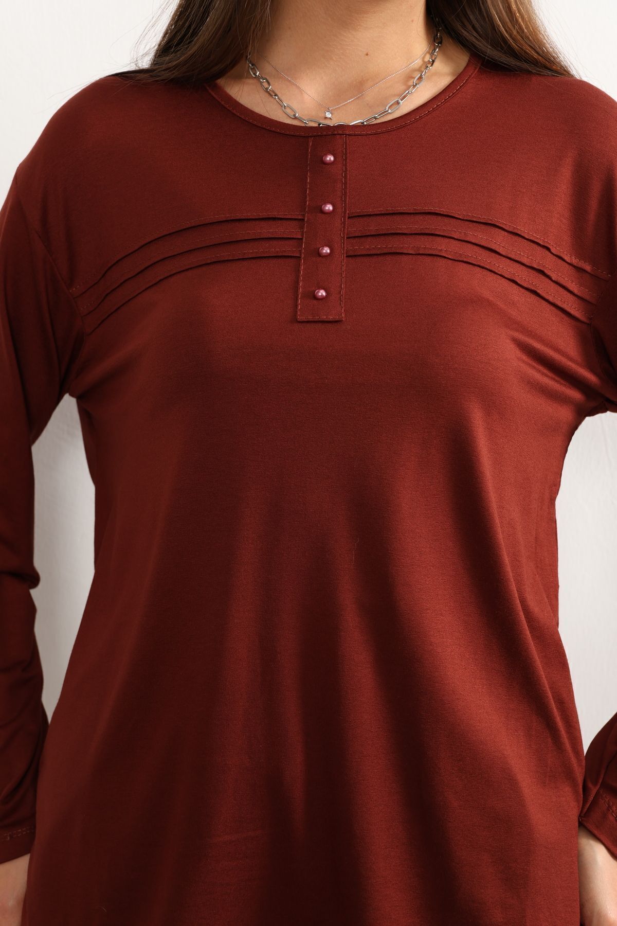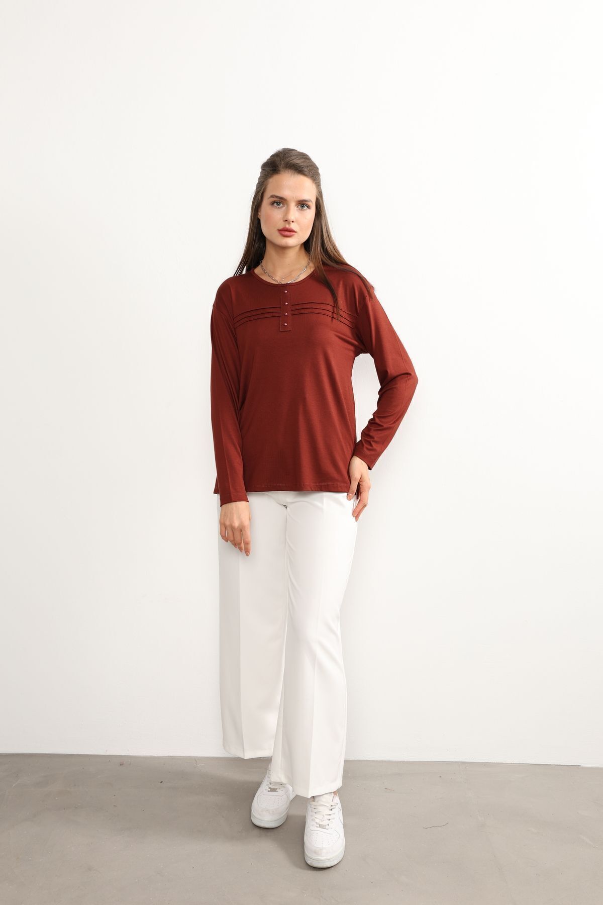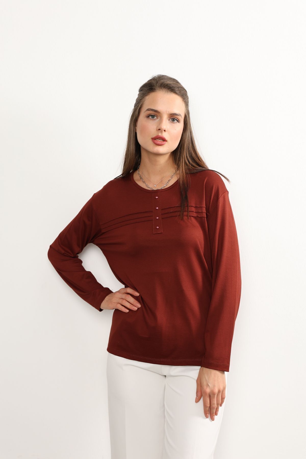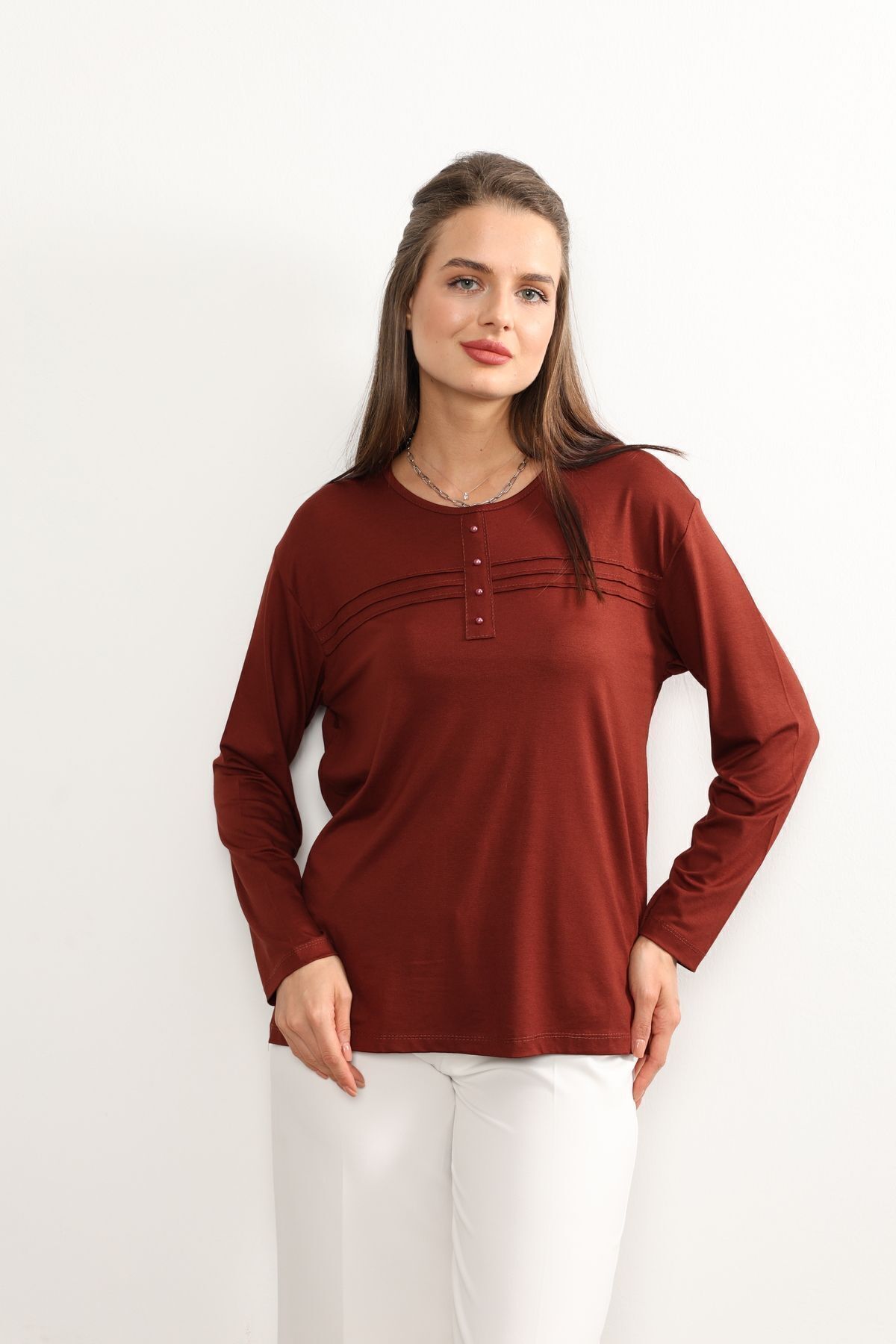 - Rahat kesimi ile günlük kullanım için ideal olan bu lacivert anne penye bluz, şıklığı konforla buluşturuyor.; - Regular kalıp sayesinde her vücut tipine uyum sağlayarak rahat bir oturuş sunar.; - 30 derecede yıkama imkanı ile kolay bakım avantajı sağlar; böylece zamandan tasarruf edilirken cildinize zarar gelmez.; - Orta kalınlıkta kumaşı mevsim geçişlerinde ideal sıcaklıkta tutar ve mevsim normallerine uyum sağlar.; - İç göstermeyen yapısıyla rahatlıkla tercih edilebilir; günlük aktivitelerinizde kendinizi güvende hissedersiniz.; - Kemersiz tasarımı sayesinde pratik kullanım sunarken, şerit detaylarıyla modern bir görünüm kazandırır.; - Organik materyaliyle sürdürülebilir moda anlayışına katkıda bulunurken aynı zamanda cildinizle dosttur.; - Uzun kollu yapısı ile mevsim koşullarına uygun koruma sağlar; serin havalarda bile sıcak tutar.; - Basic silueti sayesinde farklı aksesuarlarla kolayca kombinlenebilir; gardrobunuzdaki çok yönlü parçalar arasına girer.; - Bisiklet yaka detayı ile sade ama şık bir görünüm sunarken likralı dokusu esnekliği arttırarak gün boyu rahat hareket etmenizi sağlar.; - Kapamasız tasarımıyla basit kullanım imkanı tanırken, süprem dokuma tipi dayanıklılığı arttırır.; - Cepsiz yapısıyla minimalist tarzınıza uyum sağlarken şerit detaylarıyla dikkat çekici bir stil oluşturur.; - Tesettür giyim koleksiyonuna ait bu bluz, tesettürlü kadınların da tercihi olacak şekilde tasarlanmıştır.; - Süprem dokuma tipinin sunduğu yumuşaklıkla teninizde nazikçe hissedilirken likra materyali esnekliği arttırarak gün boyu konforlu bir deneyim yaşatır.; - Tüm sezonlarda rahatlıkla tercih edebileceğiniz bu lacivert anne penye bluzu, gardrobunuza renk katmak için idealdir.; - Astarsız oluşuyla hafiflik kazandırırken kapamasız yapısıyla pratik kullanım sunar; böylece her anınıza eşlik eder.; - Kapsız tasarımı sayesinde rahatlıkla giyilip çıkartılabilir; zamandan tasarruf etmenizi sağlar.; - Düz deseniyle sadelikten yana olanların beğenisini kazanırken şerit detaylarıyla modern çizgilere sahip olmanızı sağlar.; - Tesettür giyim koleksiyonuna ait olmasıyla hem şıklığı hem de tesettür prensiplerine uygunluğu ön plana çıkartır.; - Likralı materyali esneklik kazandırarak vücut hatlarınıza mükemmel uyum sağlar; hareket özgürlüğünüzü kısıtlamaz.; - Gündüzden geceye her ortama uyum sağlayan bu lacivert anne penye bluz, her anınıza eşlik ederken stil sahibi görünmenizi sağlar.; - XL bedeniyle geniş beden skalasına hitap ederek herkes için erişilebilirlik sunar; geniş beden seçenekleri sayesinde rahatlıkla tercih edebilirsiniz.; - Astarsız oluşuyla minimalist yaklaşımı benimseyenlerin beğenisini kazanırken şerit detaylarıyla göz alıcı bir dokunuş ekler.; - Kapamasız yapısıyla pratik kullanım imkanı tanırken süprem dokuma tipinin sunduğu yumuşaklıkla teninizde nazikçe hissedilir; likra materyali esnekliği arttırarak gün boyu konforlu bir deneyim yaşatır.Orta yaş ve üzeri kadınlar için ideal, rahat ve şık bir tasarım sunan likralı bluz; Dört mevsim rahatlıkla tercih edilebilen, kiremit rengiyle dikkat çeken bir stil; Günlük kullanım için uygun, basic kesimiyle her türlü kombinle uyum sağlar; Uzun kollu tasarımı ile mevsim geçişlerinde ideal koruma sağlar; Tüm yaş gruplarına hitap eden geniş beden skalasıyla herkes için uygunluk sunar; Organik materyal kullanımı sayesinde sürdürülebilir moda anlayışını destekler; Şerit detayları ile modern ve dinamik bir görünüm kazandırır; Viskon süprem dokuma tipi, yumuşak dokusuyla konforlu bir deneyim sunar; Ekstra kalın askıları sayesinde gün boyu rahatlık sağlar; Bisiklet yaka tasarımı ile sade ve zarif bir duruş sergiler; Süprem kumaşı hafifliği ve nefes alabilir yapısıyla gün içindeki konforu arttırır;