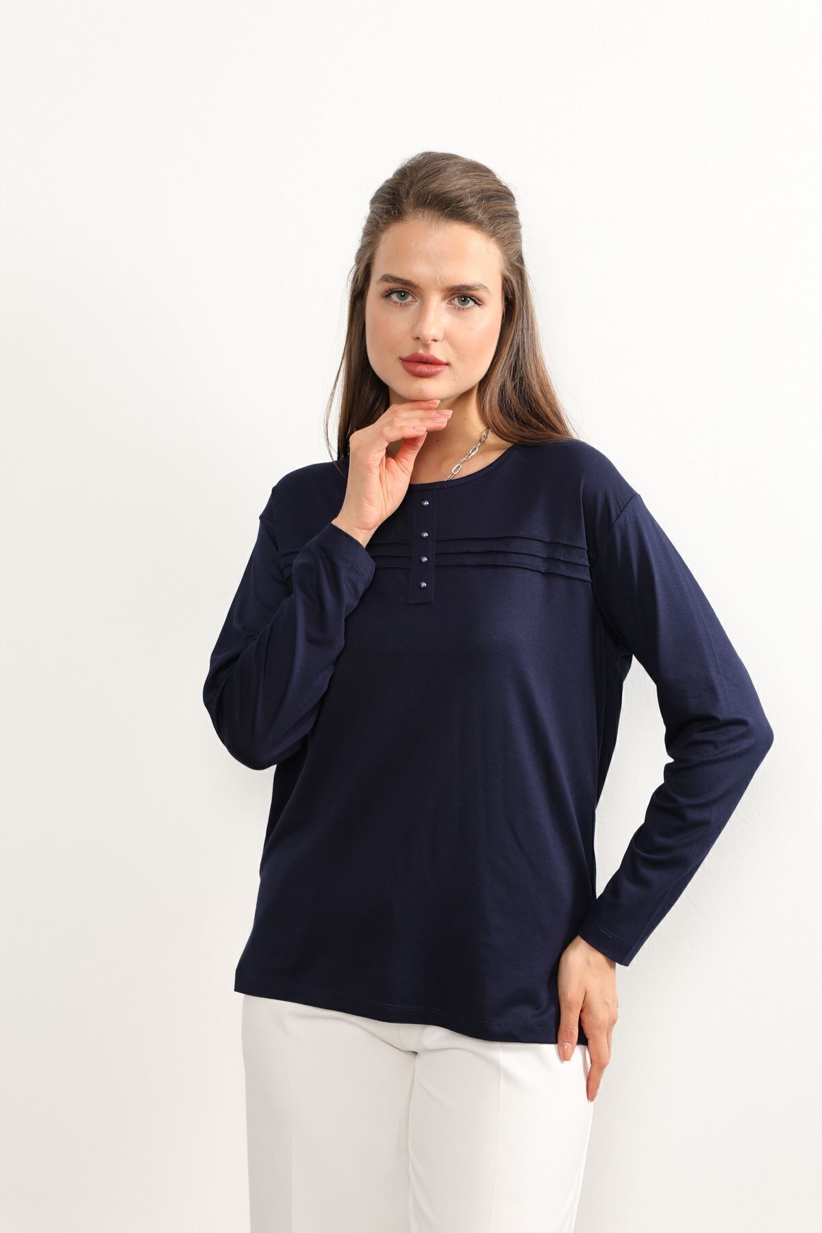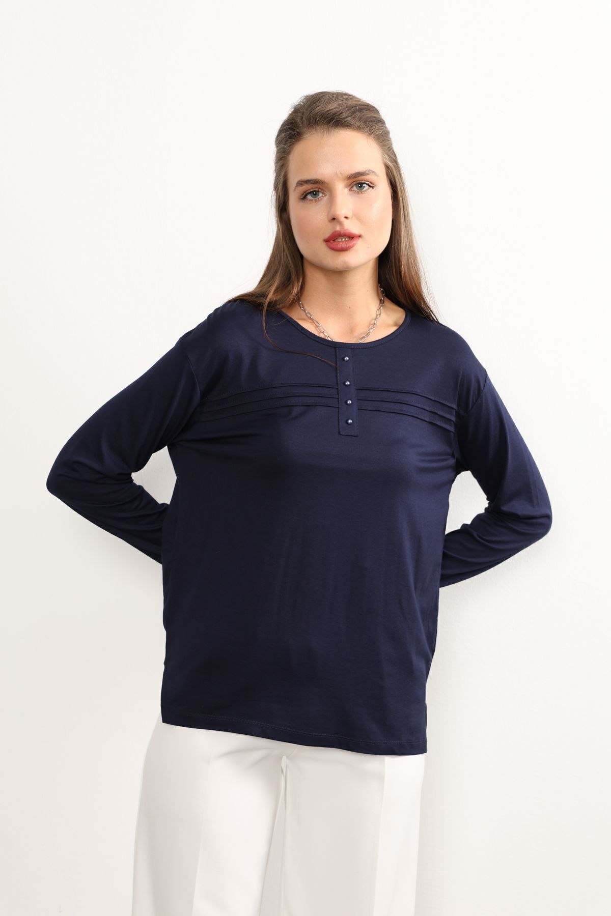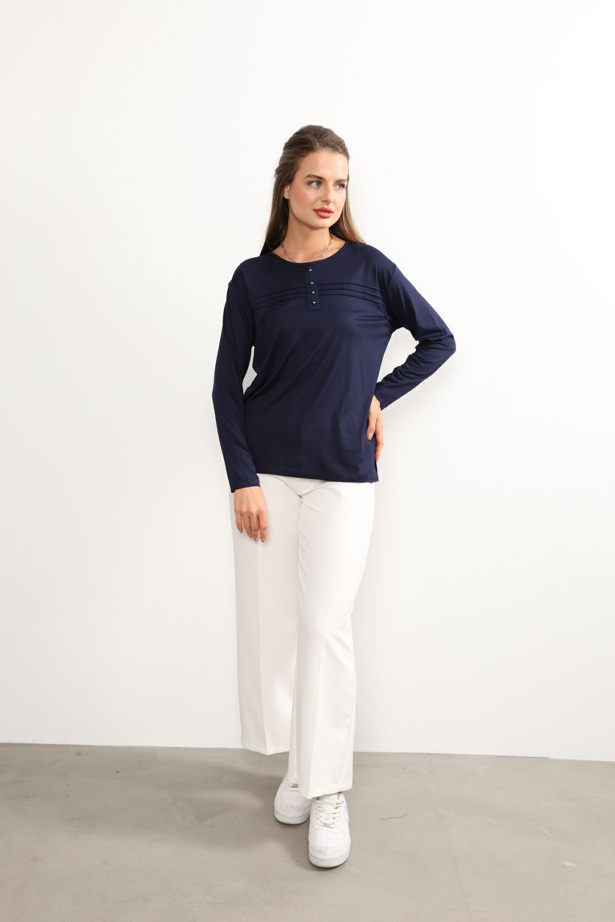 - Rahat kesimi ile günlük kullanım için ideal olan bu lacivert anne penye bluz, şıklığı konforla buluşturuyor.; - Regular kalıp sayesinde her vücut tipine uyum sağlayarak rahat bir oturuş sunar.; - 30 derecede yıkama imkanı ile kolay bakım avantajı sağlar; böylece zamandan tasarruf edilirken cildinize zarar gelmez.; - Orta kalınlıkta kumaşı mevsim geçişlerinde ideal sıcaklıkta tutar ve mevsim normallerine uyum sağlar.; - İç göstermeyen yapısıyla rahatlıkla tercih edilebilir; günlük aktivitelerinizde kendinizi güvende hissedersiniz.; - Kemersiz tasarımı sayesinde pratik kullanım sunarken, şerit detaylarıyla modern bir görünüm kazandırır.; - Organik materyaliyle sürdürülebilir moda anlayışına katkıda bulunurken aynı zamanda cildinizle dosttur.; - Uzun kollu yapısı ile mevsim koşullarına uygun koruma sağlar; serin havalarda bile sıcak tutar.; - Basic silueti sayesinde farklı aksesuarlarla kolayca kombinlenebilir; gardrobunuzdaki çok yönlü parçalar arasına girer.; - Bisiklet yaka detayı ile sade ama şık bir görünüm sunarken likralı dokusu esnekliği arttırarak gün boyu rahat hareket etmenizi sağlar.; - Kapamasız tasarımıyla basit kullanım imkanı tanırken, süprem dokuma tipi dayanıklılığı arttırır.; - Cepsiz yapısıyla minimalist tarzınıza uyum sağlarken şerit detaylarıyla dikkat çekici bir stil oluşturur.; - Tesettür giyim koleksiyonuna ait bu bluz, tesettürlü kadınların da tercihi olacak şekilde tasarlanmıştır.; - Süprem dokuma tipinin sunduğu yumuşaklıkla teninizde nazikçe hissedilirken likra materyali esnekliği arttırarak gün boyu konforlu bir deneyim yaşatır.; - Tüm sezonlarda rahatlıkla tercih edebileceğiniz bu lacivert anne penye bluzu, gardrobunuza renk katmak için idealdir.; - Astarsız oluşuyla hafiflik kazandırırken kapamasız yapısıyla pratik kullanım sunar; böylece her anınıza eşlik eder.; - Kapsız tasarımı sayesinde rahatlıkla giyilip çıkartılabilir; zamandan tasarruf etmenizi sağlar.; - Düz deseniyle sadelikten yana olanların beğenisini kazanırken şerit detaylarıyla modern çizgilere sahip olmanızı sağlar.; - Tesettür giyim koleksiyonuna ait olmasıyla hem şıklığı hem de tesettür prensiplerine uygunluğu ön plana çıkartır.; - Likralı materyali esneklik kazandırarak vücut hatlarınıza mükemmel uyum sağlar; hareket özgürlüğünüzü kısıtlamaz.; - Gündüzden geceye her ortama uyum sağlayan bu lacivert anne penye bluz, her anınıza eşlik ederken stil sahibi görünmenizi sağlar.; - XL bedeniyle geniş beden skalasına hitap ederek herkes için erişilebilirlik sunar; geniş beden seçenekleri sayesinde rahatlıkla tercih edebilirsiniz.; - Astarsız oluşuyla minimalist yaklaşımı benimseyenlerin beğenisini kazanırken şerit detaylarıyla göz alıcı bir dokunuş ekler.; - Kapamasız yapısıyla pratik kullanım imkanı tanırken süprem dokuma tipinin sunduğu yumuşaklıkla teninizde nazikçe hissedilir; likra materyali esnekliği arttırarak gün boyu konforlu bir deneyim yaşatır.- Rahat kesimi ile günlük kullanım için ideal olan bu lacivert anne penye bluz, şıklığı konforla buluşturuyor.; - Regular kalıp sayesinde her vücut tipine uyum sağlayarak rahat bir oturuş sunar.; - 30 derecede yıkama imkanı ile kolay bakım avantajı sağlar; böylece zamandan tasarruf edilirken cildinize zarar gelmez.; - Orta kalınlıkta kumaşı mevsim geçişlerinde ideal sıcaklıkta tutar ve mevsim normallerine uyum sağlar.; - İç göstermeyen yapısıyla rahatlıkla tercih edilebilir; günlük aktivitelerinizde kendinizi güvende hissedersiniz.; - Kemersiz tasarımı sayesinde pratik kullanım sunarken, şerit detaylarıyla modern bir görünüm kazandırır.; - Organik materyaliyle sürdürülebilir moda anlayışına katkıda bulunurken aynı zamanda cildinizle dosttur.; - Uzun kollu yapısı ile mevsim koşullarına uygun koruma sağlar; serin havalarda bile sıcak tutar.; - Basic silueti sayesinde farklı aksesuarlarla kolayca kombinlenebilir; gardrobunuzdaki çok yönlü parçalar arasına girer.; - Bisiklet yaka detayı ile sade ama şık bir görünüm sunarken likralı dokusu esnekliği arttırarak gün boyu rahat hareket etmenizi sağlar.; - Kapamasız tasarımıyla basit kullanım imkanı tanırken, süprem dokuma tipi dayanıklılığı arttırır.; - Cepsiz yapısıyla minimalist tarzınıza uyum sağlarken şerit detaylarıyla dikkat çekici bir stil oluşturur.; - Tesettür giyim koleksiyonuna ait bu bluz, tesettürlü kadınların da tercihi olacak şekilde tasarlanmıştır.; - Süprem dokuma tipinin sunduğu yumuşaklıkla teninizde nazikçe hissedilirken likra materyali esnekliği arttırarak gün boyu konforlu bir deneyim yaşatır.; - Tüm sezonlarda rahatlıkla tercih edebileceğiniz bu lacivert anne penye bluzu, gardrobunuza renk katmak için idealdir.; - Astarsız oluşuyla hafiflik kazandırırken kapamasız yapısıyla pratik kullanım sunar; böylece her anınıza eşlik eder.; - Kapsız tasarımı sayesinde rahatlıkla giyilip çıkartılabilir; zamandan tasarruf etmenizi sağlar.; - Düz deseniyle sadelikten yana olanların beğenisini kazanırken şerit detaylarıyla modern çizgilere sahip olmanızı sağlar.; - Tesettür giyim koleksiyonuna ait olmasıyla hem şıklığı hem de tesettür prensiplerine uygunluğu ön plana çıkartır.; - Likralı materyali esneklik kazandırarak vücut hatlarınıza mükemmel uyum sağlar; hareket özgürlüğünüzü kısıtlamaz.; - Gündüzden geceye her ortama uyum sağlayan bu lacivert anne penye bluz, her anınıza eşlik ederken stil sahibi görünmenizi sağlar.; - XL bedeniyle geniş beden skalasına hitap ederek herkes için erişilebilirlik sunar; geniş beden seçenekleri sayesinde rahatlıkla tercih edebilirsiniz.; - Astarsız oluşuyla minimalist yaklaşımı benimseyenlerin beğenisini kazanırken şerit detaylarıyla 