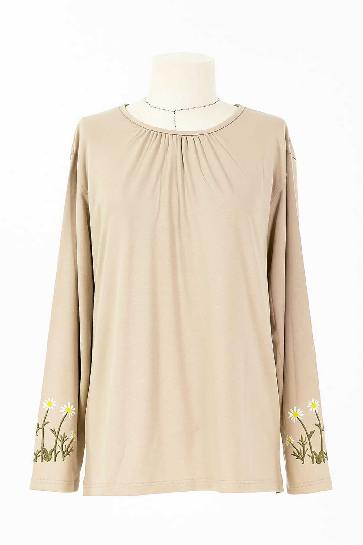 Kadın Likralı Orta Yaş Ve Üzeri Dört Mevsim Füme Anne Penye Bluz Yeni Sezon Kolu İşlemeli Bej - L
